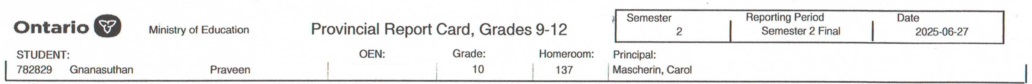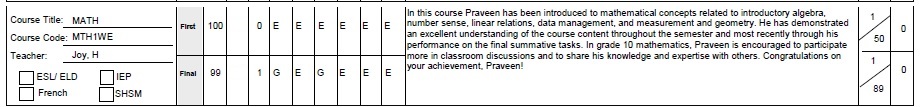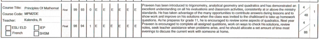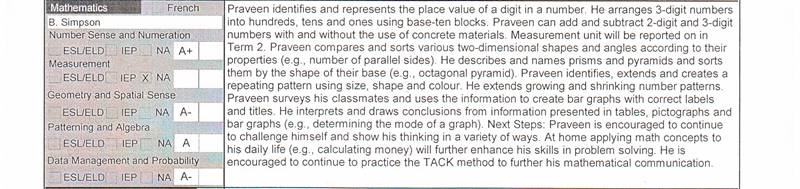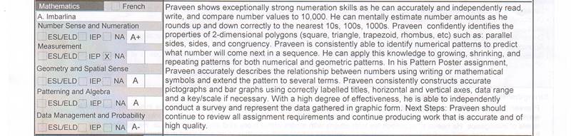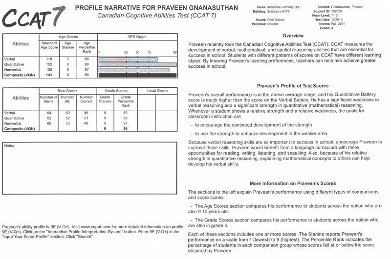 He scored 100% in Grade 3 EQAO and earned 99% Grade 4 CCAT.