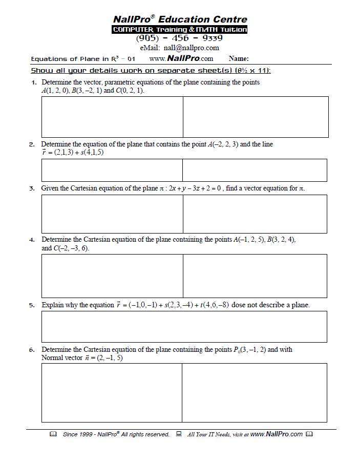 Chapter 8 | Equations of Lines and Planes | ![]() Work Sheet 8 |