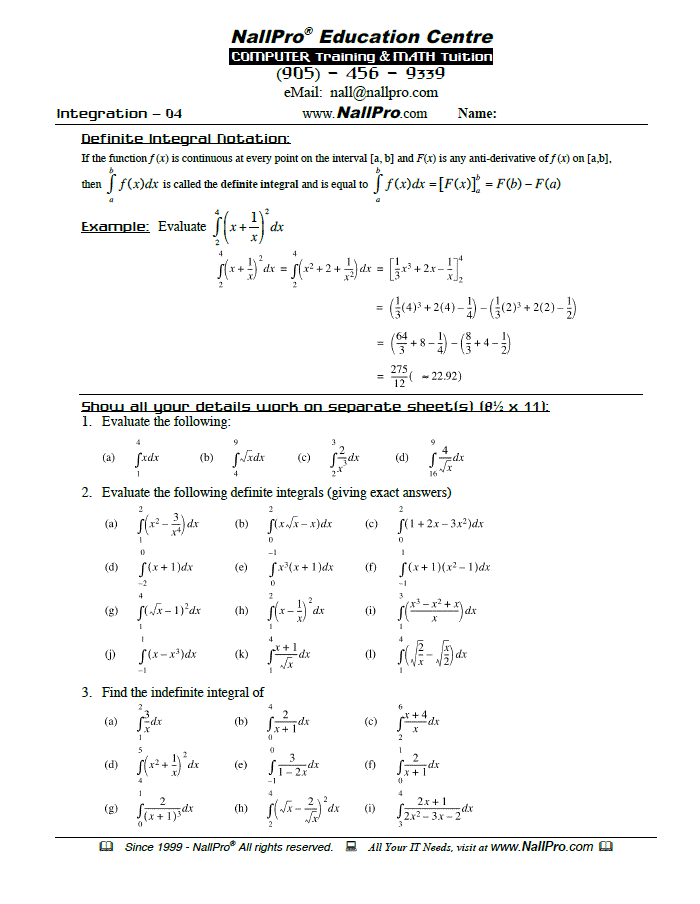 Integration and Its Applications | ![]() Work Sheet 9 |